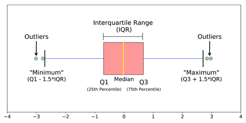IQR and Boxplots: Usually data points which lie 1.5 times of IQR above Q3 and below Q1 are considered outliers